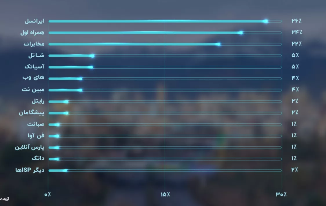 بسیاری از کاربران برای اینکه کیفیت و سرعت اینترنت همراه بهتر است به سمت استفاده اینترنت همراه کشیده شدهاند. در بین کاربرانی که با اینترنت ثابت از آپارات استفاده میکنند ابتدا مخابرات با ۲۲ درصد و سپس شاتل و آسیاتک هردو با ۵ درصد سهم قرار دارند.